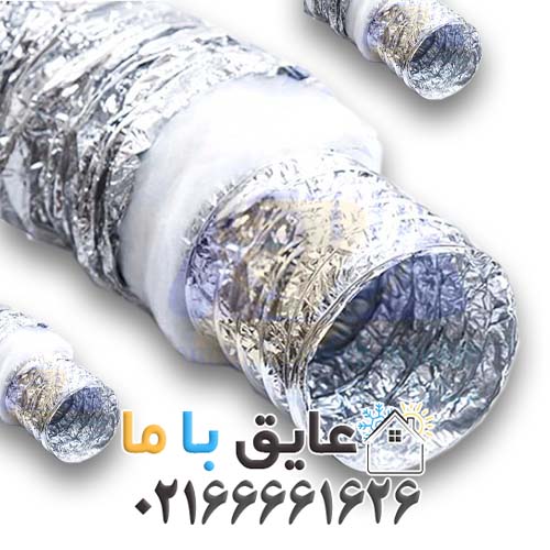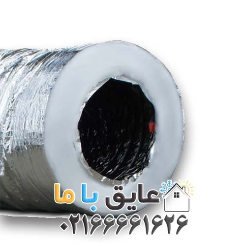- لایه میانی عایق هوا (اختیاری یا داخلی): در برخی مدلها، یک لایه عایق حرارتی سبک (اغلب از الیاف پلی استر یا فایبرگلاس بسیار نازک) بین لایه داخلی و پوشش آلومینیومی قرار میگیرد تا انتقال حرارت و اتلاف انرژی در مسیر انتقال هوا به حداقل برسد. این امر بهخصوص در مسیرهای طولانی ضروری است.